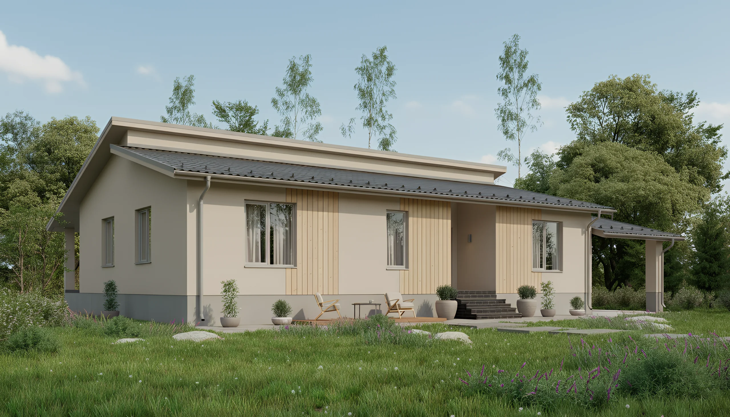 Проект «Альпен» — это одноэтажный дом площадью 270 м², в котором основной акцент сделан на комфорт повседневной жизни и понятную логику пространства. Здесь нет ощущения «сложного» дома: всё интуитивно — от входа до приватных зон. Вы заходите и сразу понимаете, как этим домом пользоваться каждый день.