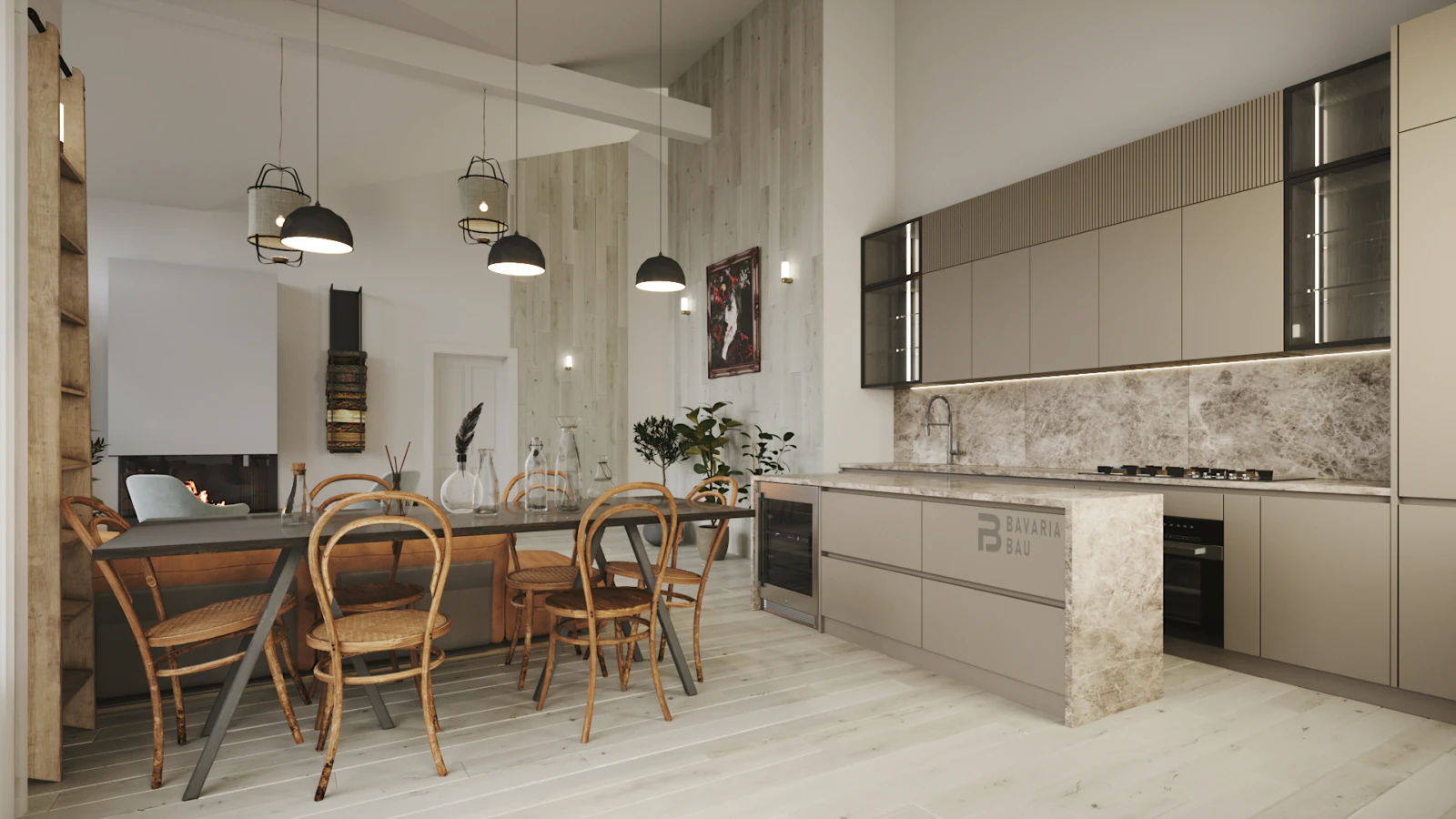 Просторная кухня-гостинная с выходом на террасу.