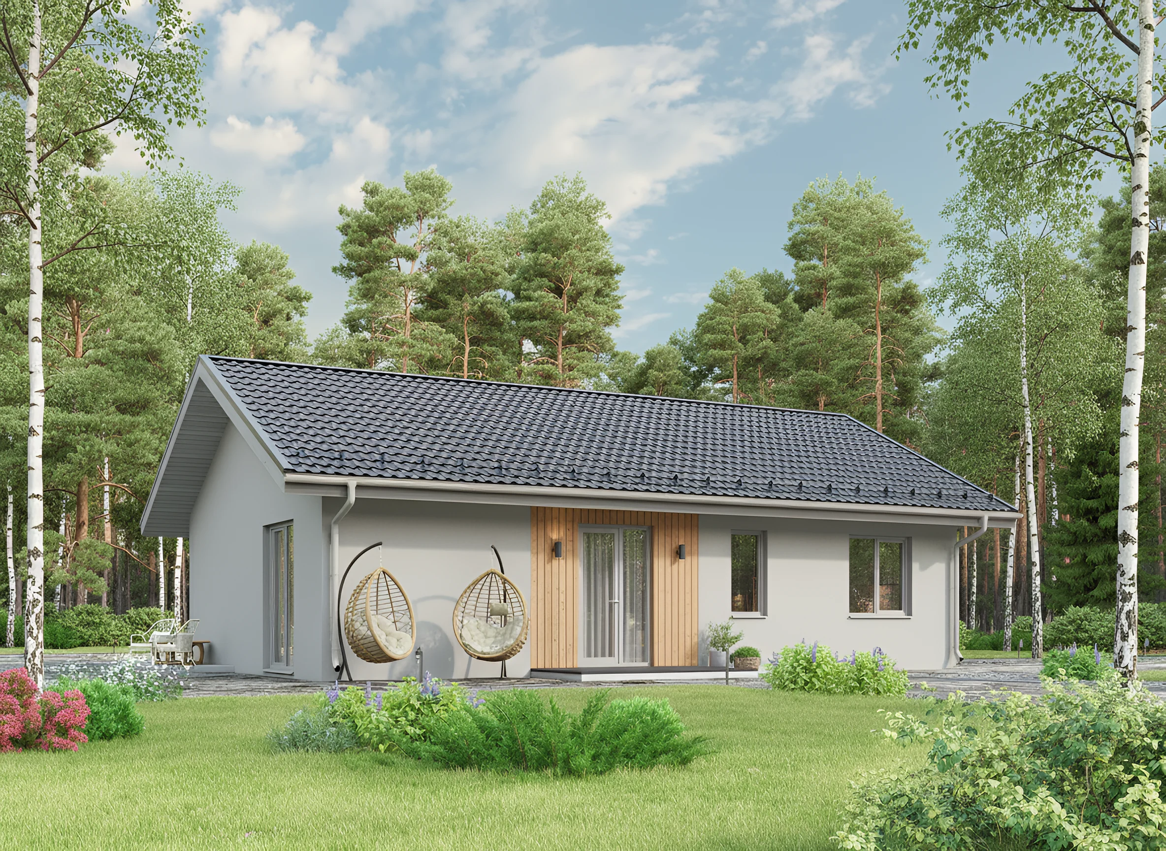 «Фленсбург» — одноэтажный дом площадью 116 м² в скандинавском стиле, ориентированный на комфортную и спокойную загородную жизнь. Габариты 12,8 × 10,5 м позволяют разместить дом на участке среднего размера, сохранив баланс между застройкой и свободным пространством вокруг. Архитектура лаконичная, без перегруженных элементов — это упрощает строительство и делает внешний вид актуальным на годы вперёд.